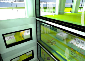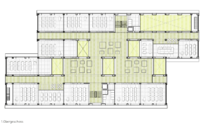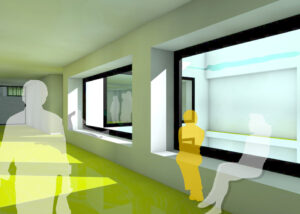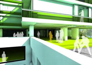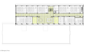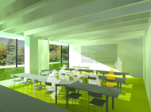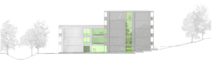 Das Stadtbild von Winterthur ist gleichermassen geprägt vom historischen Stadtkern wie auch von grossmassstäblichen Industriebauten. Das neue Schulgebäude reagiert volumetrisch auf den baulichen Massstab der näheren Umgebung (Wohnsiedlung, Nachbarvilla) und führt den von den Architekten Amsler eingeführten, architektonischen Ansatz zeitgenössisch weiter, u.a. durch die Volumenverschiebung und die Feingliedrigkeit. Mit seinem kubisch gestaffelten Baukörper nimmt das Gebäude die Volumetrie der Industriebauten wie z.B. auf dem Sulzerareal auf.