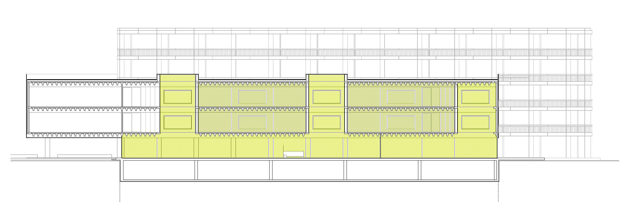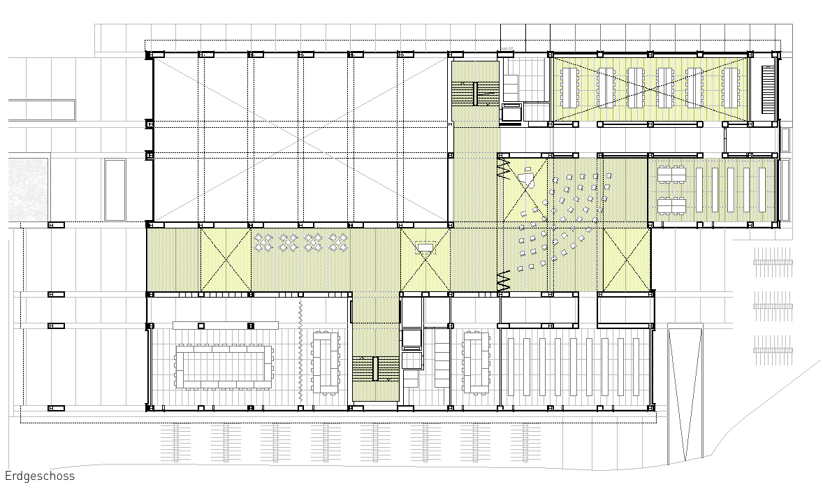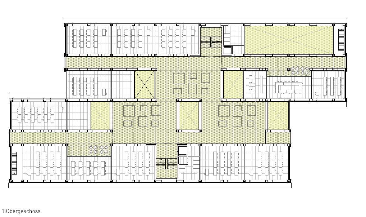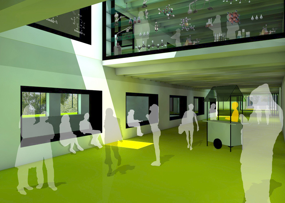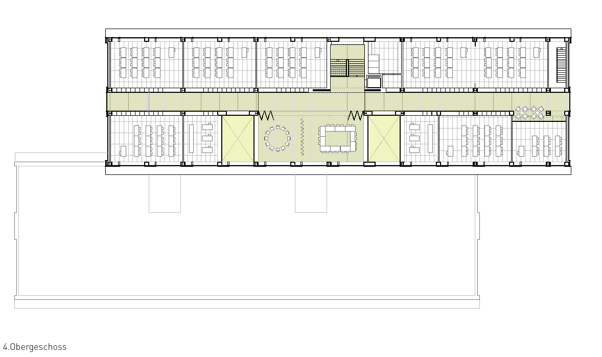 Das Stadtbild von Winterthur ist gleichermassen geprägt vom historischen Stadtkern wie auch von grossmassstäblichen Industriebauten. Das neue Schulgebäude reagiert volumetrisch auf den baulichen Massstab der näheren Umgebung (Wohnsiedlung, Nachbarvilla) und führt den von den Architekten Amsler eingeführten, architektonischen Ansatz zeitgenössisch weiter, u.a. durch die Volumenverschiebung und die Feingliedrigkeit. Mit seinem kubisch gestaffelten Baukörper nimmt das Gebäude die Volumetrie der Industriebauten wie z.B. auf dem Sulzerareal auf.