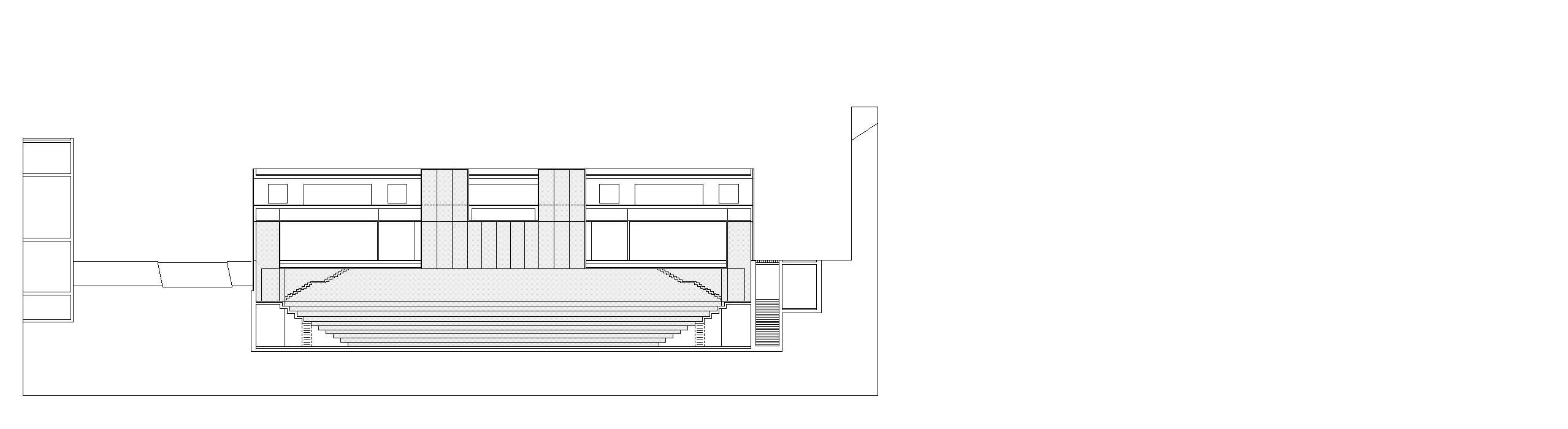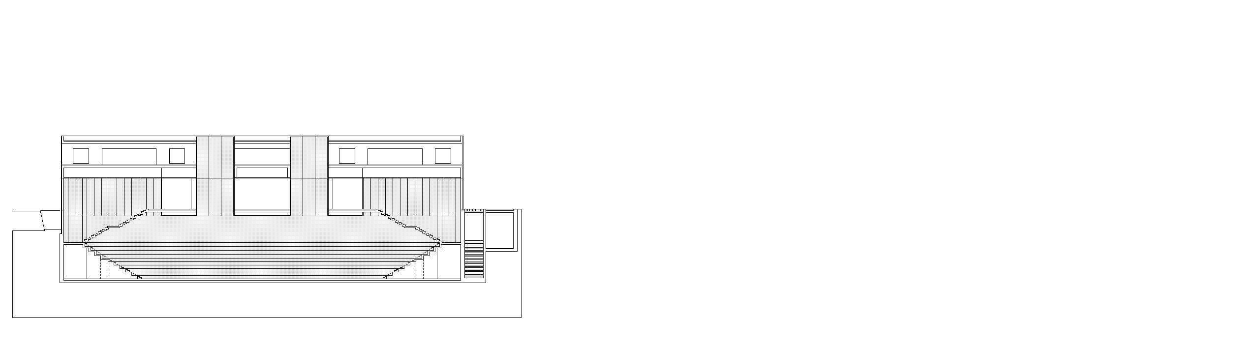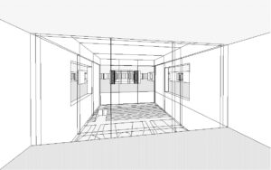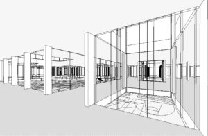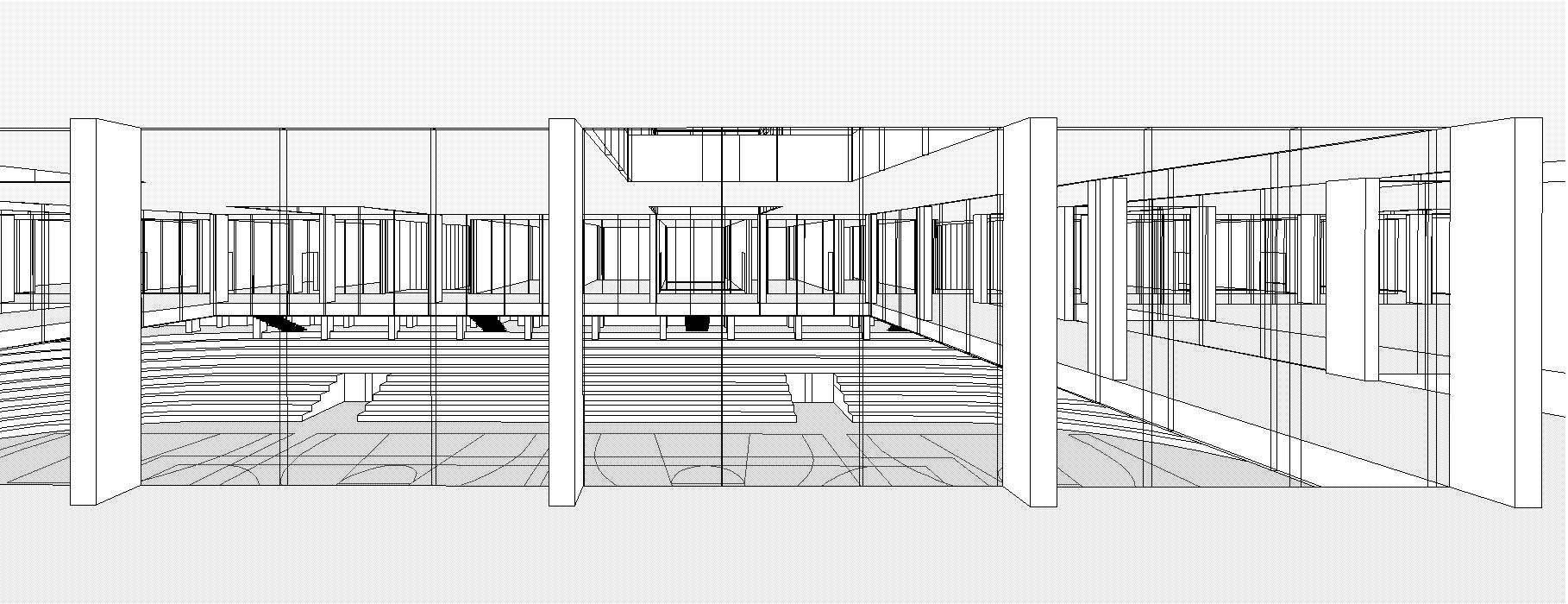 Durch die Synergie von Nutzungsanordnung im Schnitt und innovativer Tragstruktur wird es möglich, die Vorgaben des Programms städtebaulich optimal auf dem engen Perimeter unter- zubringen. Die minimierte Gebäude- höhe nimmt in höchstem Masse Rücksicht auf das Bürgliquartier und die Abtrennung des Baukörpers von der bestehenden Dreifachturnhalle macht den neuen Bau als klar begrenztes Volumen im städtischen Umfeld erkennbar. Da durch kann eine hohe Verträglichkeit des Volumens im städtischen Gefüge erreicht werden.